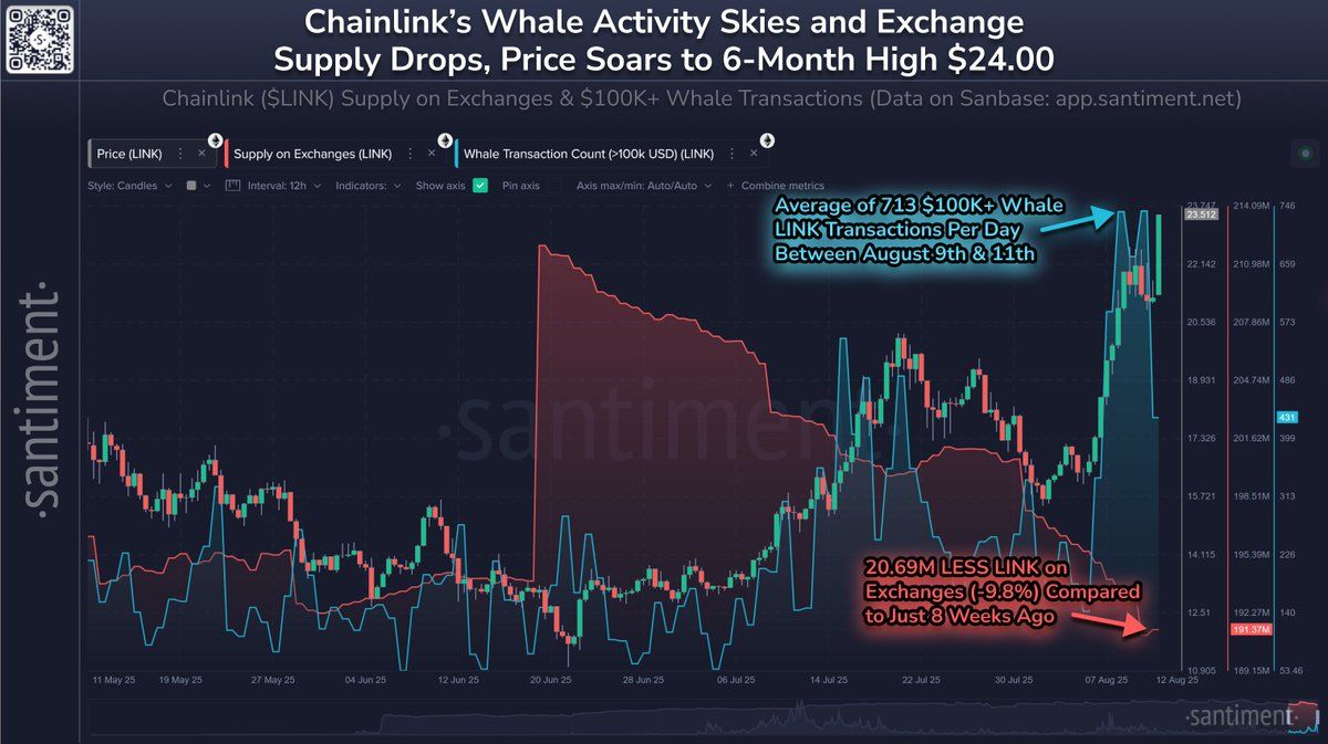 A Chainlink (LINK) acaba de registrar um marco expressivo ao ver seu preço ultrapassar US$ 24, atingindo seu nível mais alto em sete meses.