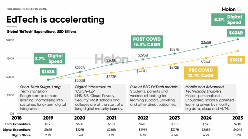 A importância deste empreendimento é sublinhada pela dimensão do mercado global de educação e formação. Estima-se que está indústria atinja impressionantes US$ 7,3 trilhões até 2025 e US$ 10 trilhões até o final da década.