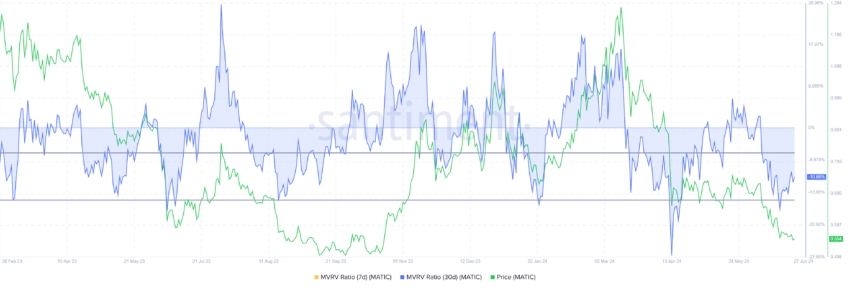 Atualmente, o MVRV de 30 dias da Polygon está em -10%, indicando perdas, o que pode levar a uma pressão de compra. Historicamente, um MVRV entre -5% e -15% geralmente sinaliza o início de recuperações, marcando uma zona de oportunidade para acumulação.