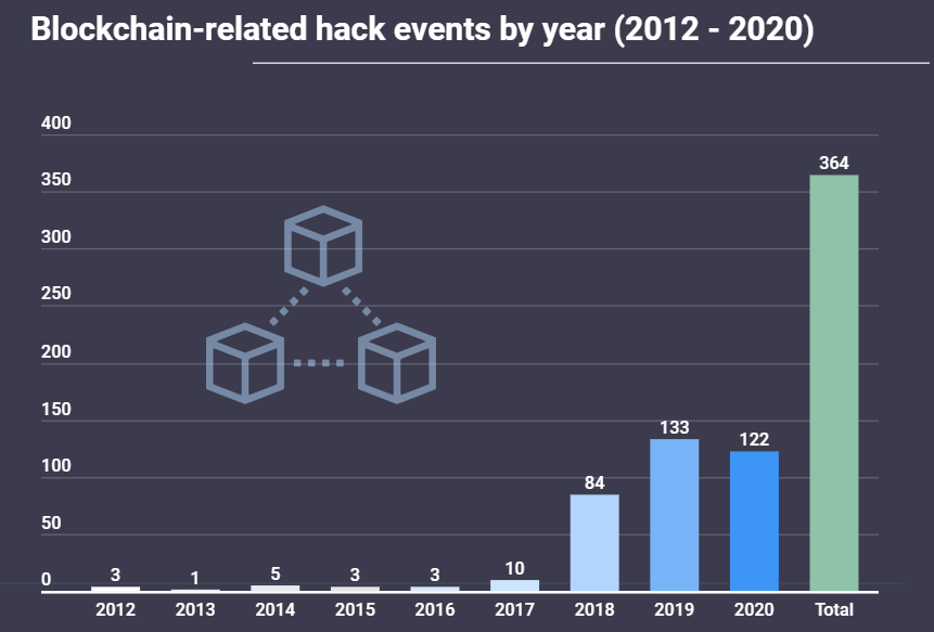 SponsoredDe acordo com o estudo, 133 ataques em 2019 miravam plataformas, aplicativos e tokens de blockchain. Em 2020, no entanto, o número diminuiu 8%, para 122.