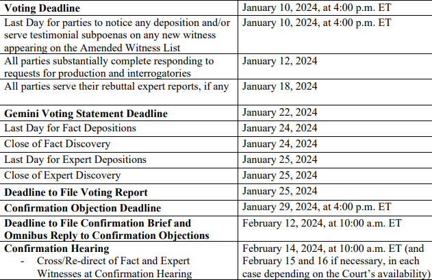 Em 13 de dezembro, a Gemini entrou com um plano de recuperação no tribunal de falências que estrutura uma proposta de distribuições iniciais para usuários do Earn.
