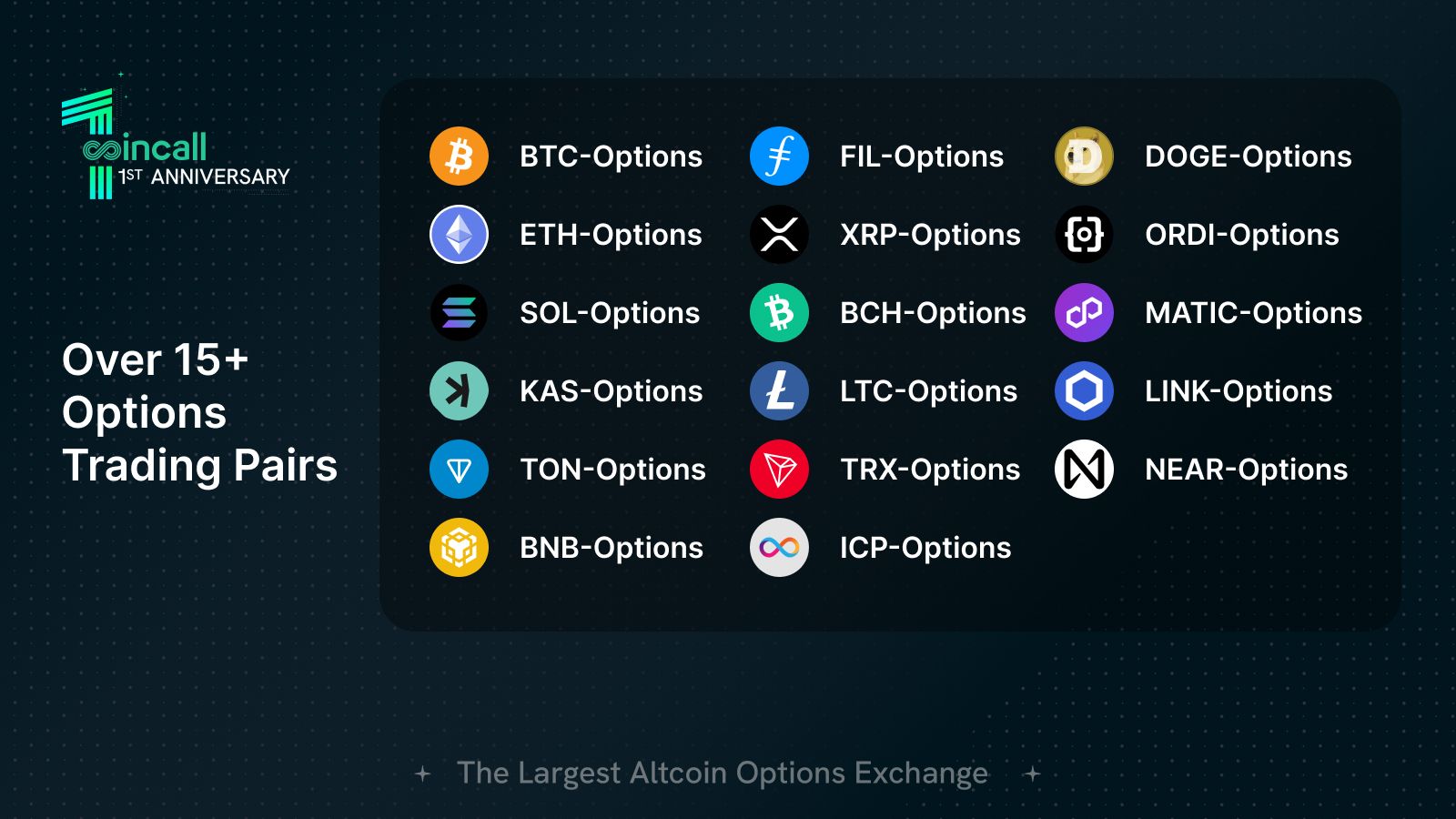 Em seu primeiro ano de construção, a Coincall listou opções de 13 altcoins, incluindo SOL, KAS, ORDI e TON, tornando-se a maior plataforma de negociação de opções de altcoins no mercado de criptomoedas atual. A Coincall não só oferece a gama mais diversificada de opções de altcoins, mas também ostenta o maior volume de negociação para essas opções. Alcançar o status de “a maior bolsa de opções de altcoins do mundo” é um marco que a Coincall alcançou através de esforço incessante.