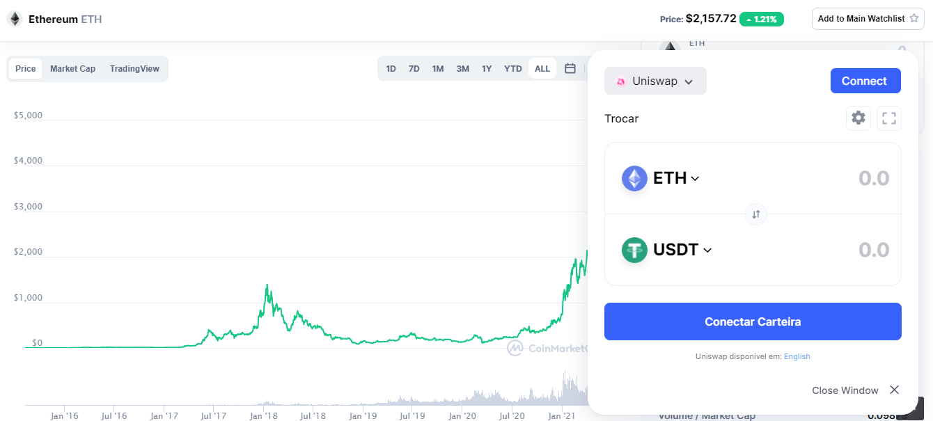 Fazendo swap no CoinMarketCap