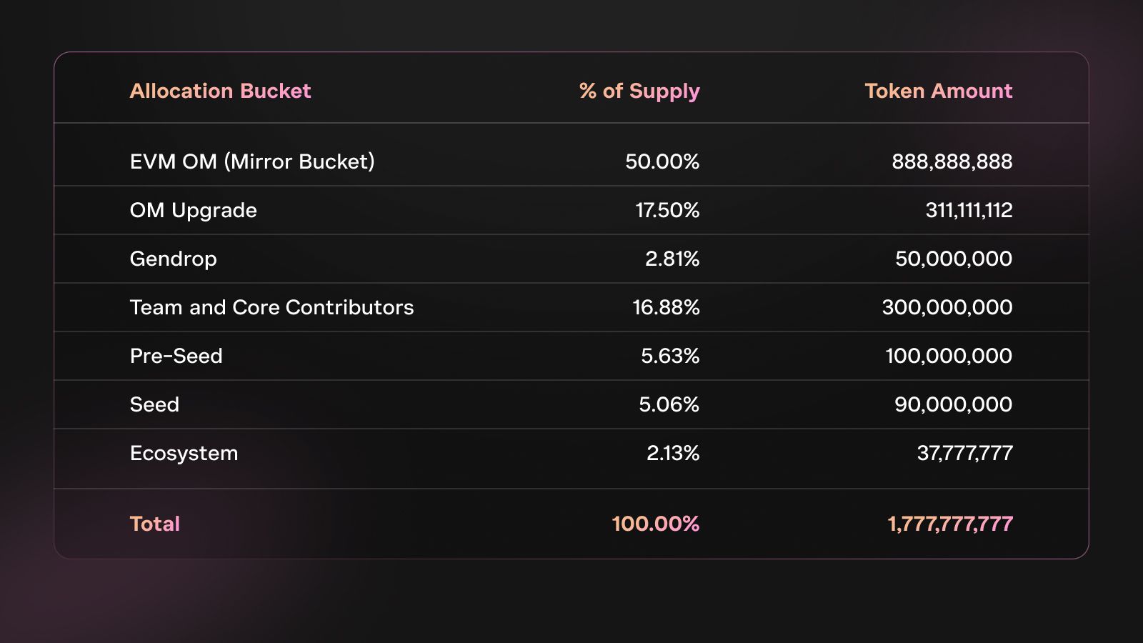 Em 2024, a equipe alterou a tokenomics da OM após uma votação da comunidade em outubro. O token migrou de um token ERC20 para a moeda nativa de staking L1 para a MANTRA Chain.