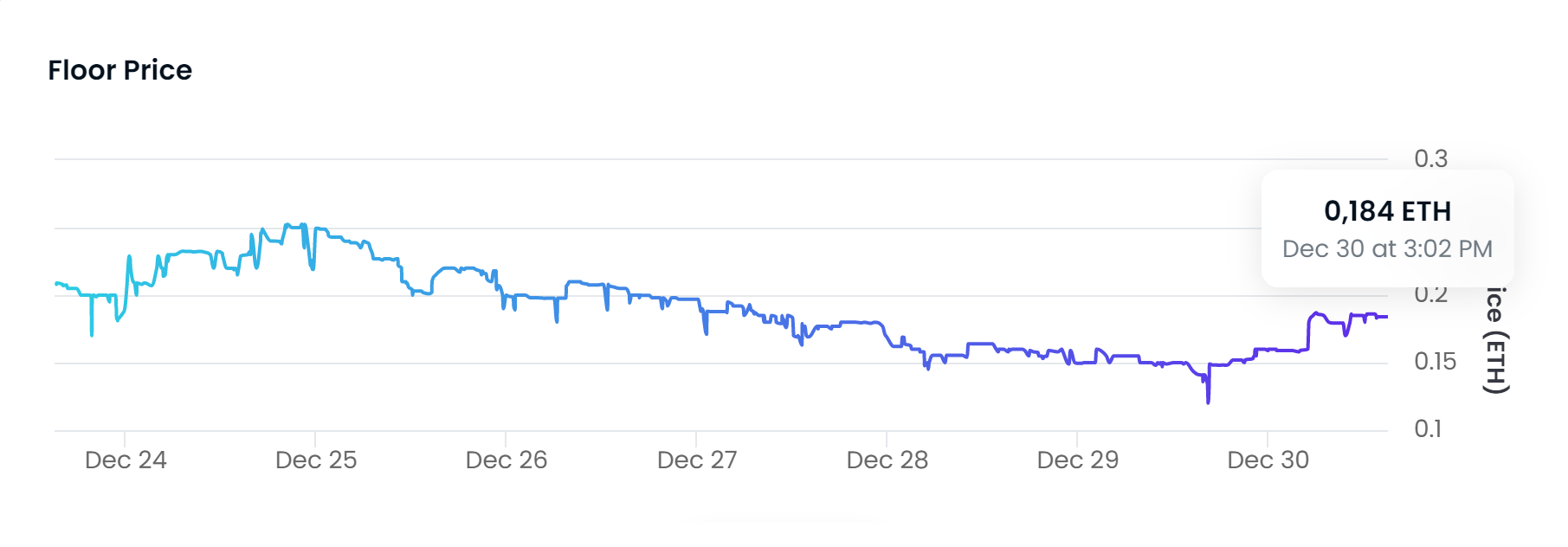 No entanto, na última semana de 2022, o volume de negociação caiu 95%, ou 380 ETH, e as vendas caíram 93%. Ainda assim, cada NFT da coleção se valorizou quando comparada com o preço inicial de venda.