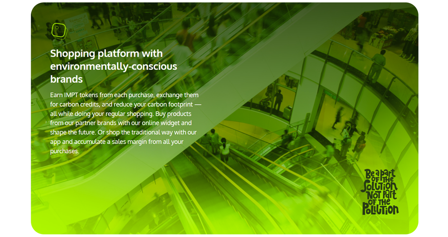 O IMPT também está construindo um mercado de varejo onde pessoas e empresas podem compensar as suas pegadas de carbono por meio de compras diárias.