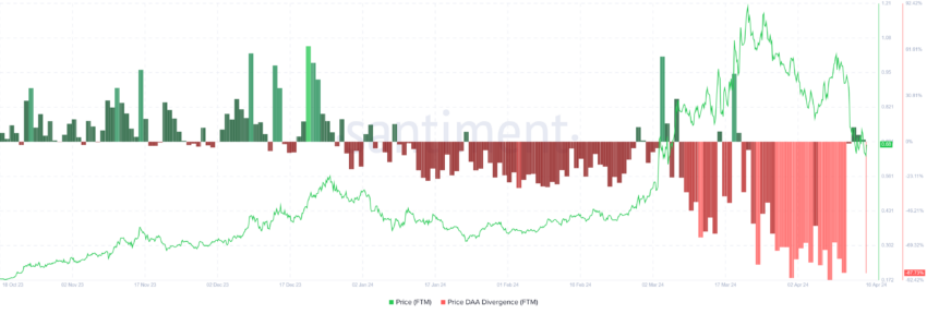 Isso se deve ao fato de que os indicadores on-chain estão sinalizando sinais de alta, sugerindo possíveis oportunidades de compra. O sinal mais forte vem da Divergência entre Preço e Endereços Ativos Diários (DAA). Essa métrica indica uma disparidade entre os movimentos de preços e o número de endereços ativos que realizam transações diariamente na rede.