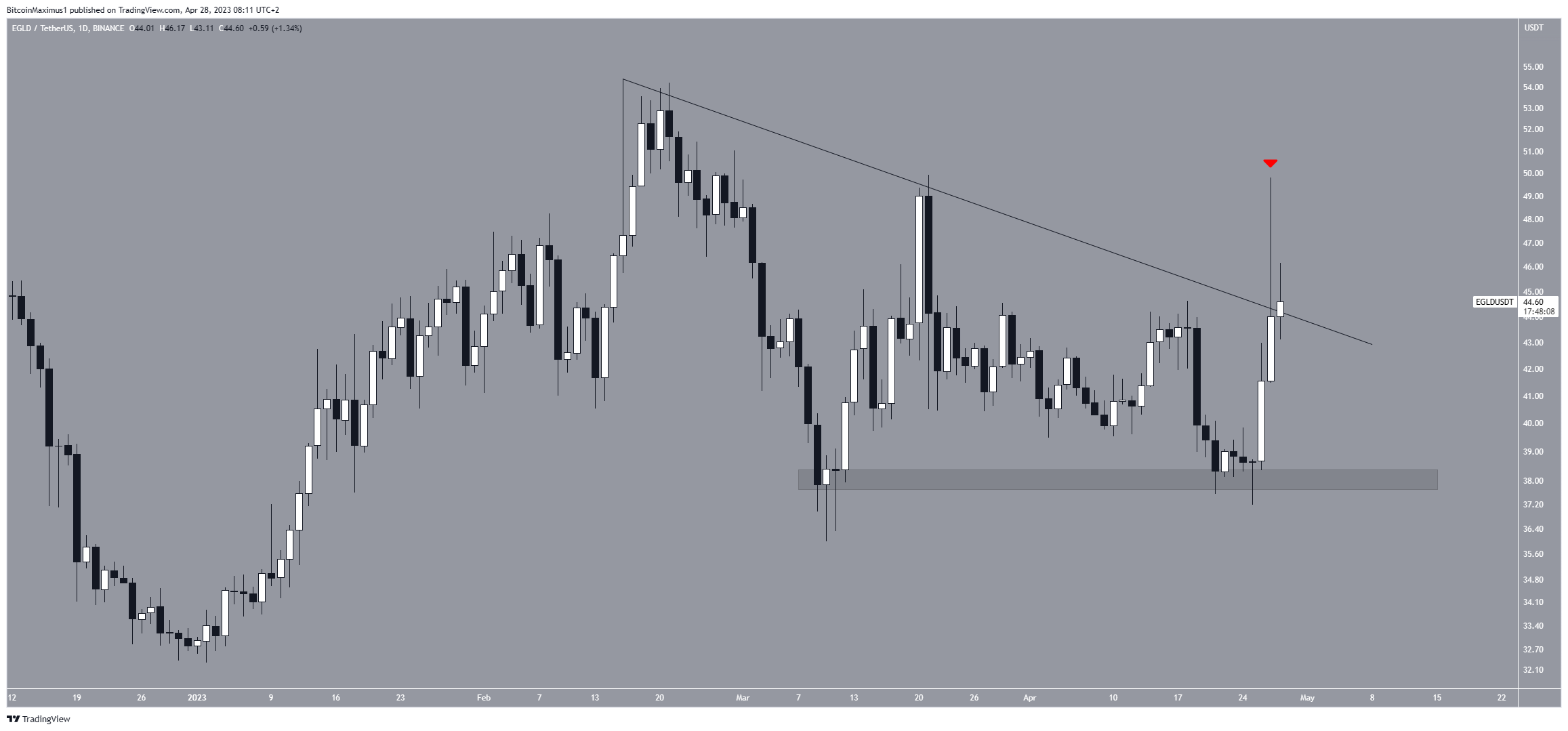 Se ocorrer uma fuga, o EGLD pode subir para US$ 50. No entanto, se a linha causar outra rejeição, uma queda para US$ 38 estará nos cartões.