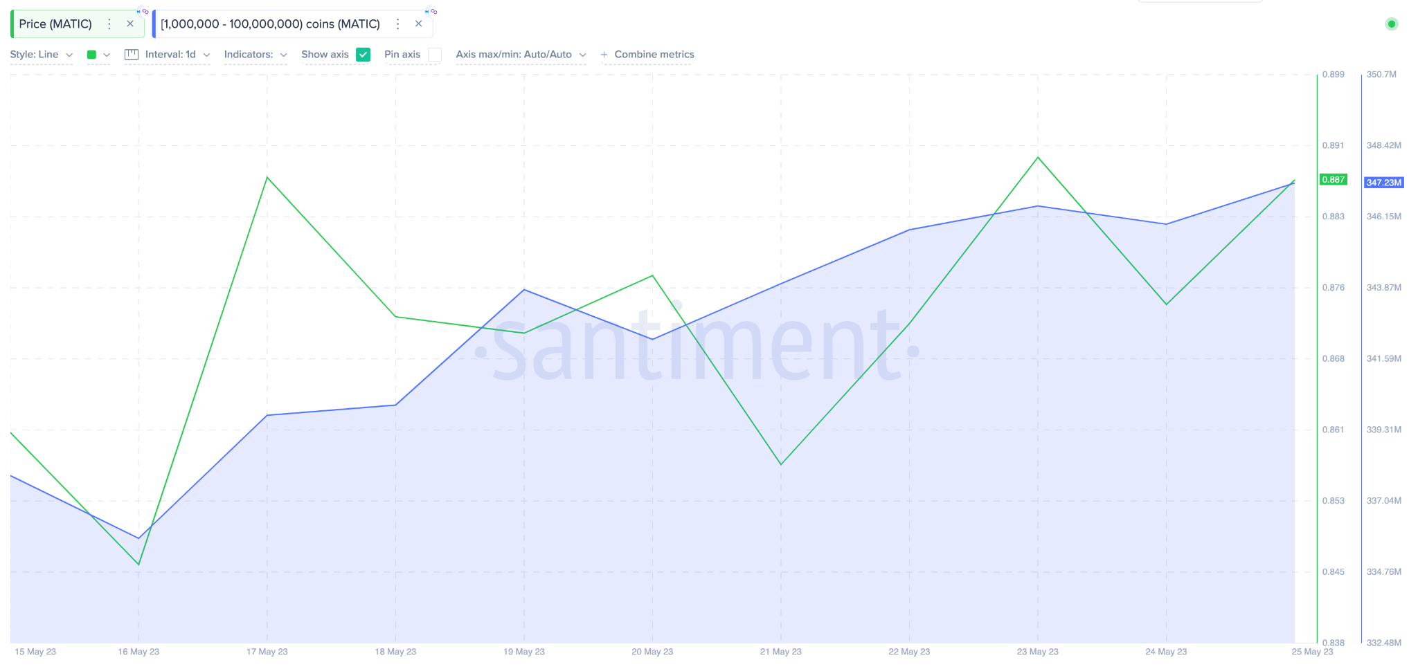 Notavelmente, o gráfico da Santiment acima destaca como o preço da MATIC aumentou quando as baleias começaram a intensificar suas compras por volta de 16 de maio.