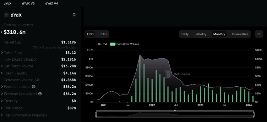A dYdX Chain, uma exchange descentralizada (DEX) construída no Cosmos SDK, ganhou destaque. Três meses após o lançamento, alcançou mais de US$ 33 bilhões em volume de negociações. Também atingiu um valor total bloqueado (TVL) de US$ 50 milhões em USDC.