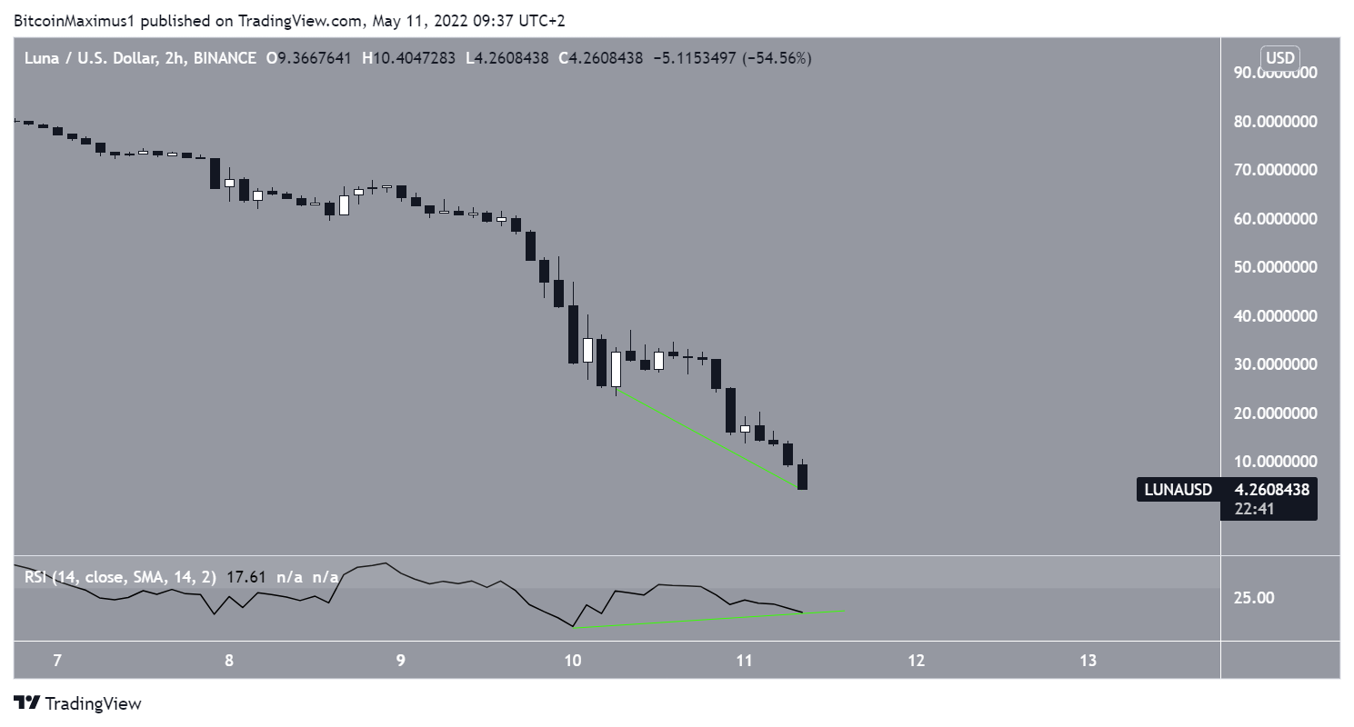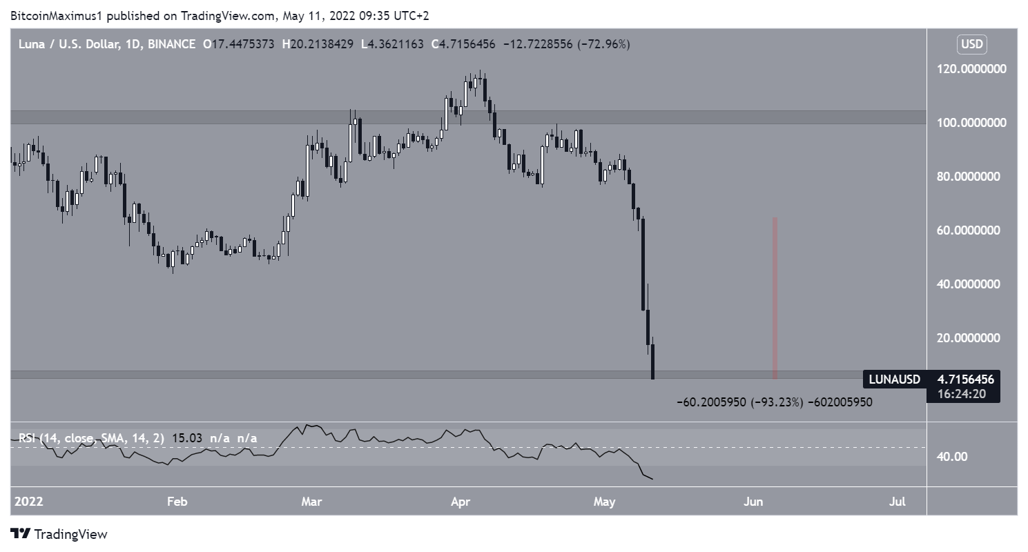 Desde o tuite, a LUNA retomou sua queda e atingiu um mínimo de US$ 4,40.