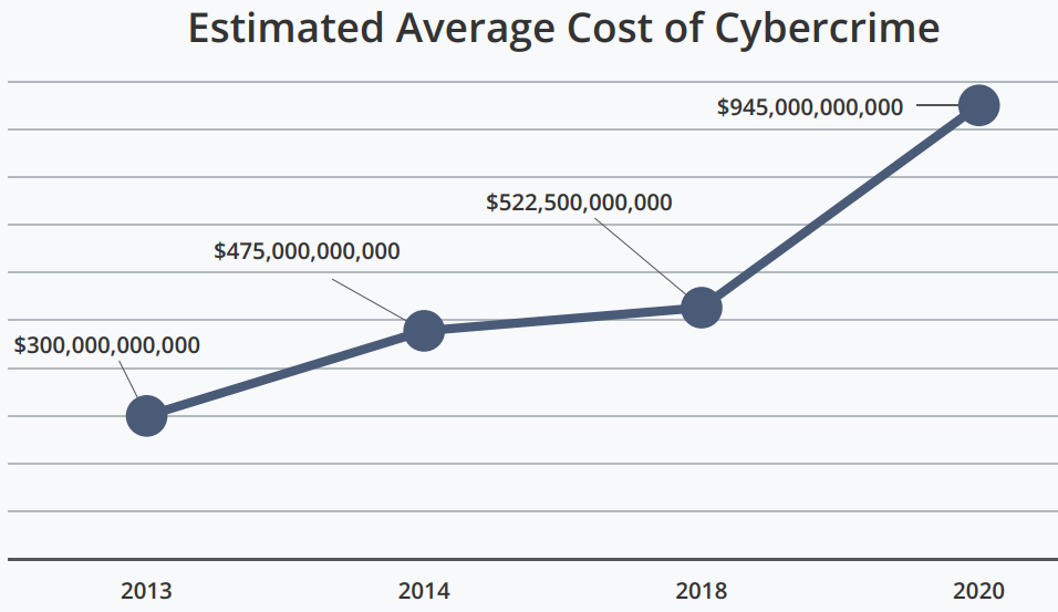 Na versão de 2018 do mesmo relatório da McAfee, o cibercrime custou à economia global US$ 600 bilhões.