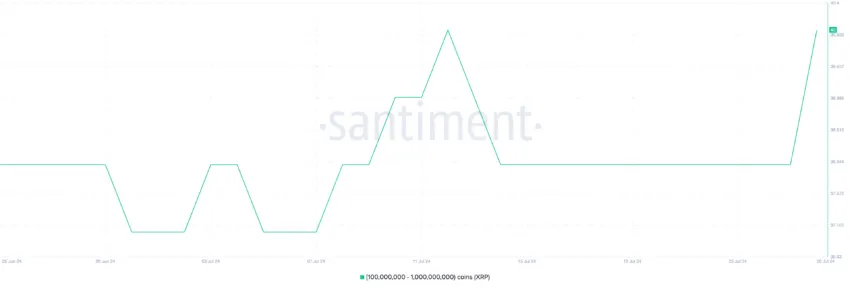 A próxima na lista de altcoins é a XRP. De acordo com a Santiment, o número de endereços com 100 milhões e 1 bilhão de tokens aumentou desde 23 de julho.
