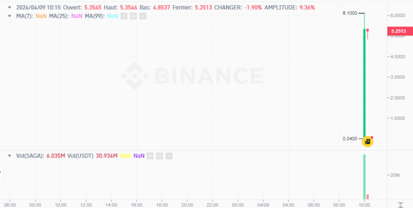 A Binance listou a Saga (SAGA) na manhã desta terça-feira (9), o que surtiu um forte impacto no preço da criptomoeda.