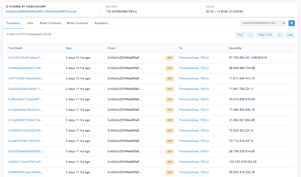 Também nos últimos três dias, a suposta carteira do criador iniciou um forte movimento de conversão de REAU para BNB, coincidindo com o movimento de queda.