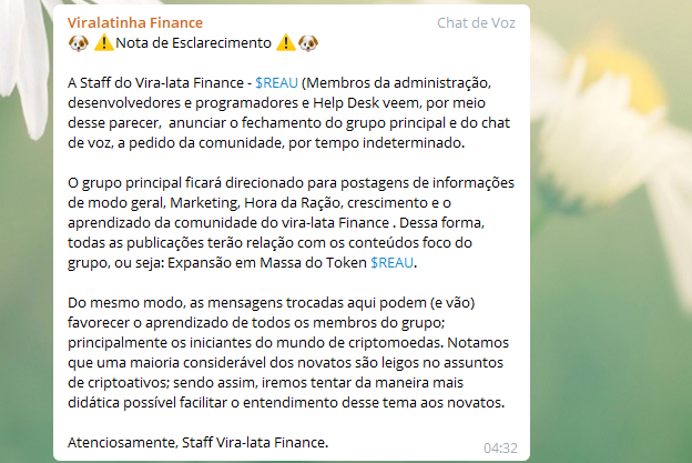 Projeto Vira-Lata Finance fecha comunidade no Telegram
