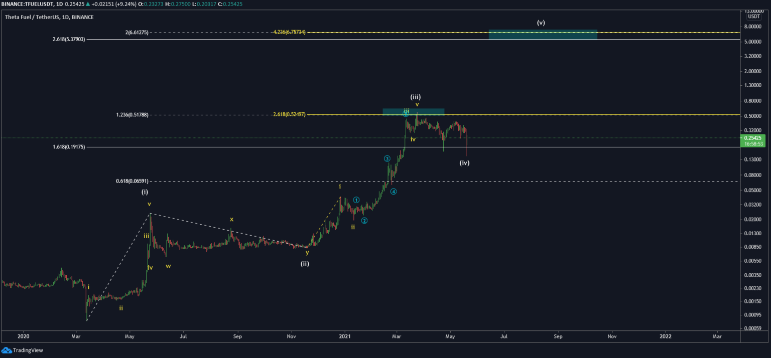 Theta Fuel (TFUEL) vem caindo ao longo de um canal de baixa desde que atingiu sua máxima histórica de US$ 0,568 no dia 24 de março.