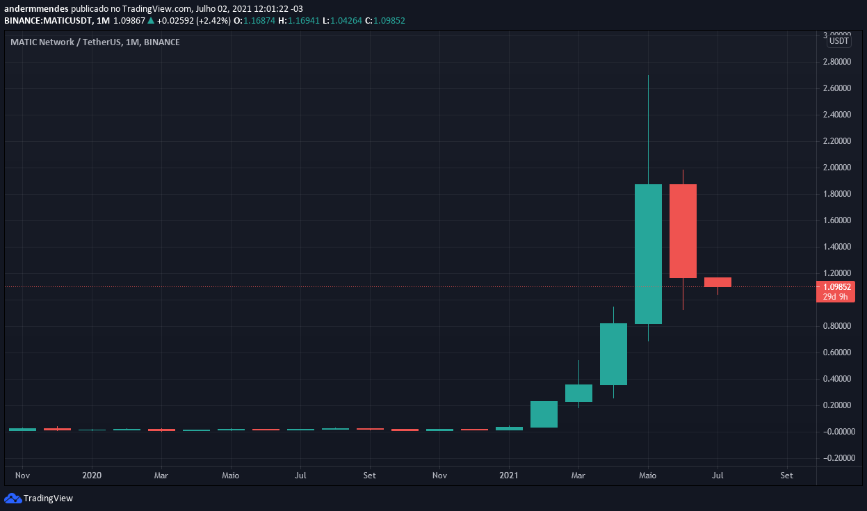 O sucesso fez o token MATIC ter uma disparada no segundo trimestre do ano, chegando à máxima histórica de US$ 2,62 em maio. A alta representou um salto de mais de 26.000%, já que a criptomoeda era negociada a apenas US$ 0,01 no início do ano.