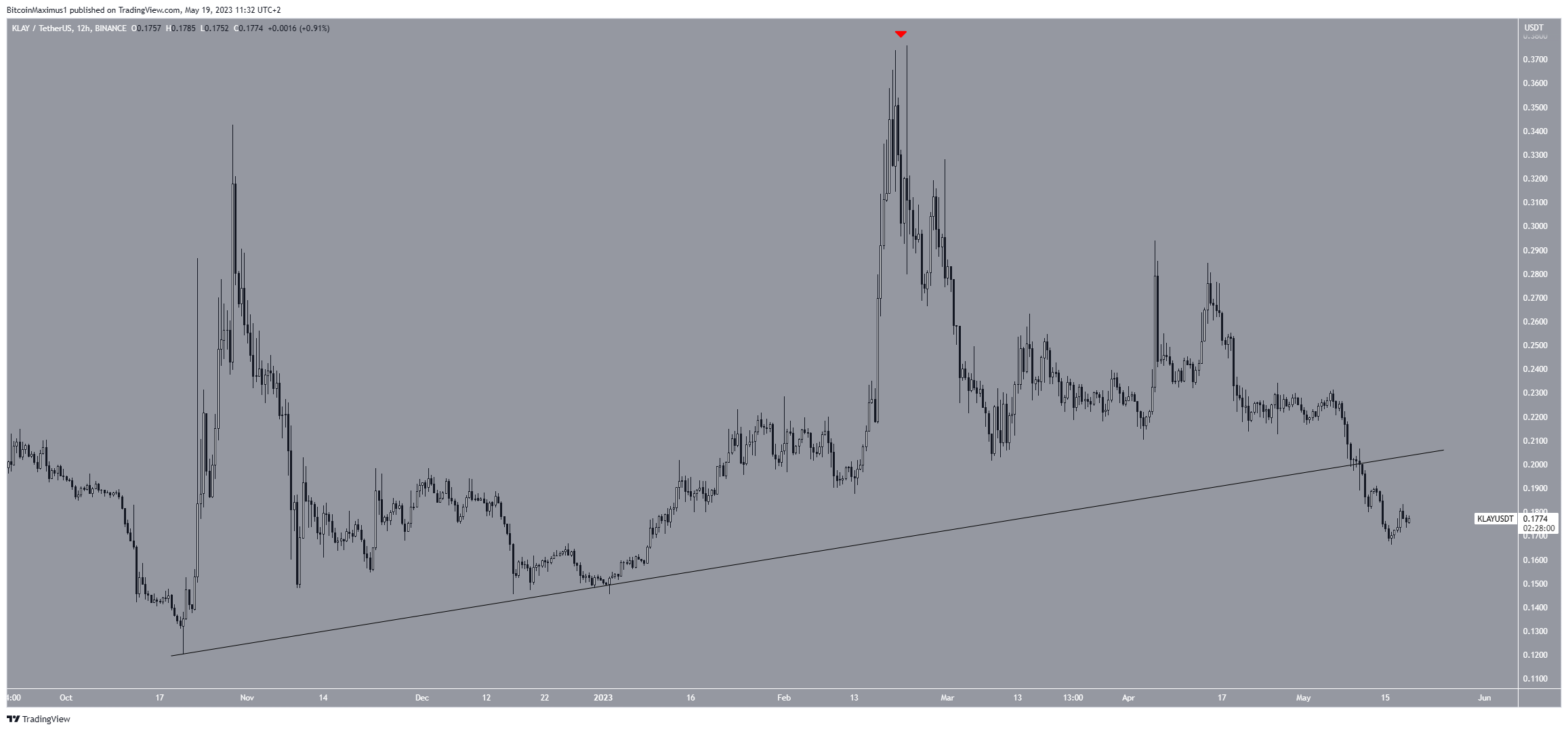A KLAY caiu desde que atingiu uma máxima anual de US$ 0,37 em 22 de maio (ícone vermelho). O token perdeu uma linha de suporte ascendente em 11 de maio.