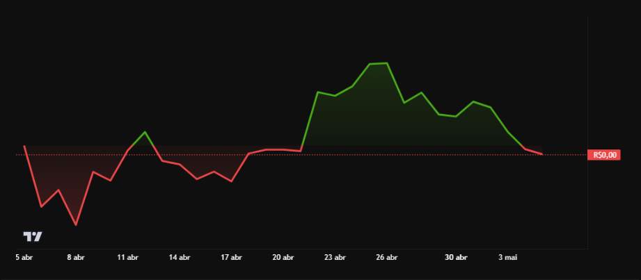Além disso, a taxa de financiamento positiva nos contratos futuros da SHIB reflete uma tendência otimista entre os traders, já que a demanda por posições longas é maior. Com um volume de negociação de R$203,81 milhões nas últimas 24 horas e uma capitalização de mercado de R$42,63 bilhões, a SHIB se recupera lentamente, com o movimento de preço atualmente positivo, indicando que a memecoin pode estar a caminho de uma recuperação de curto prazo.