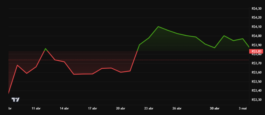 SponsoredAtualmente, a ADA está cotada a R$3,74 no par ADA/BRL, com capitalização de mercado estimada em R$134,74 bilhões. O volume de negociação nas últimas 24 horas foi negativo, indicando uma retração de 4,15%, com movimentação estimada em R$-5,96 bilhões.