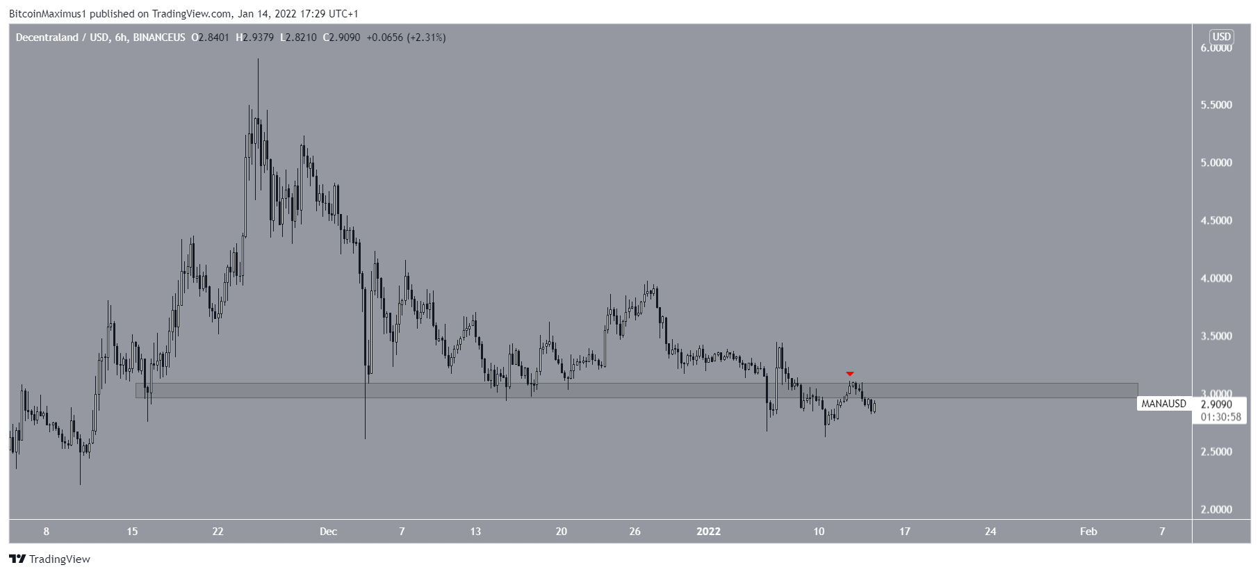 A MANA está em tendência de baixa desde que atingiu uma nova máxima histórica de preço em 25 de novembro.