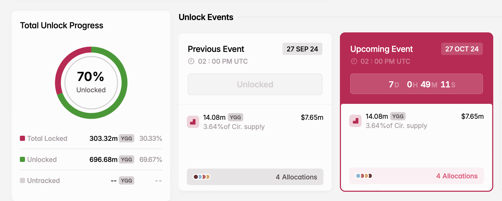 - Número de tokens desbloqueados: 14,08 milhões de YGG