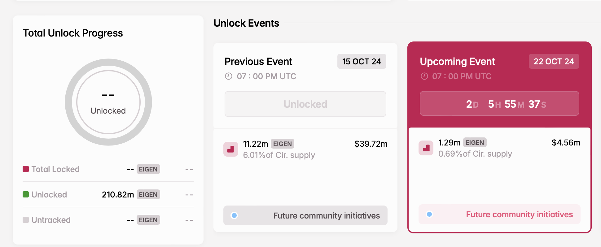 - Número de tokens desbloqueados: 1,29 milhão de EIGEN