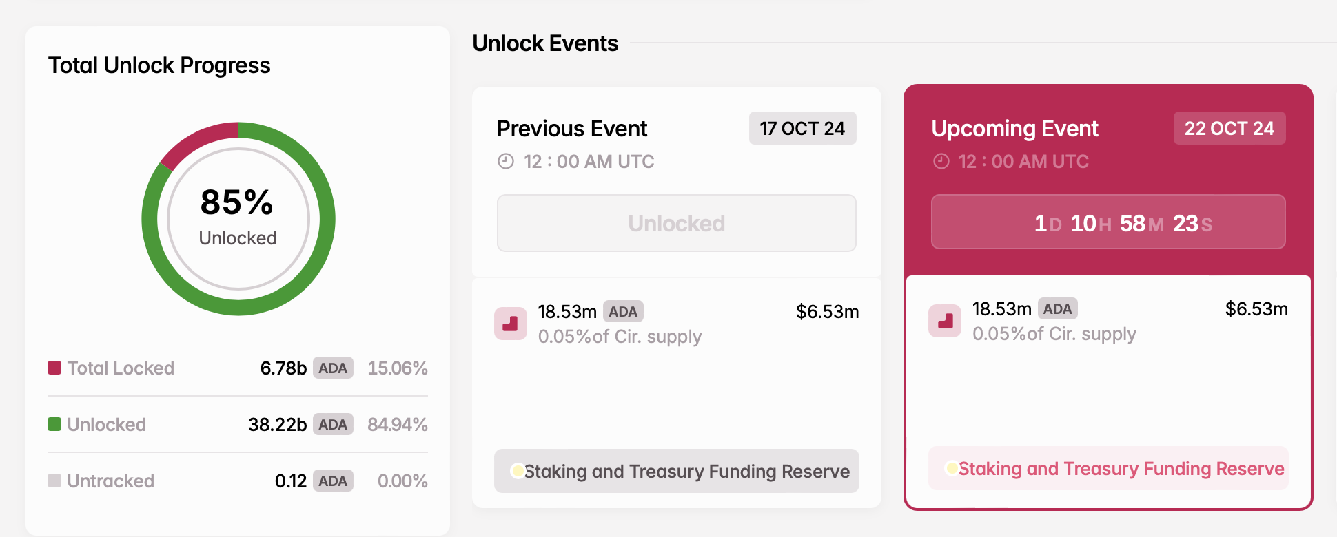 - Número de tokens desbloqueados: 18,53 milhões de ADA