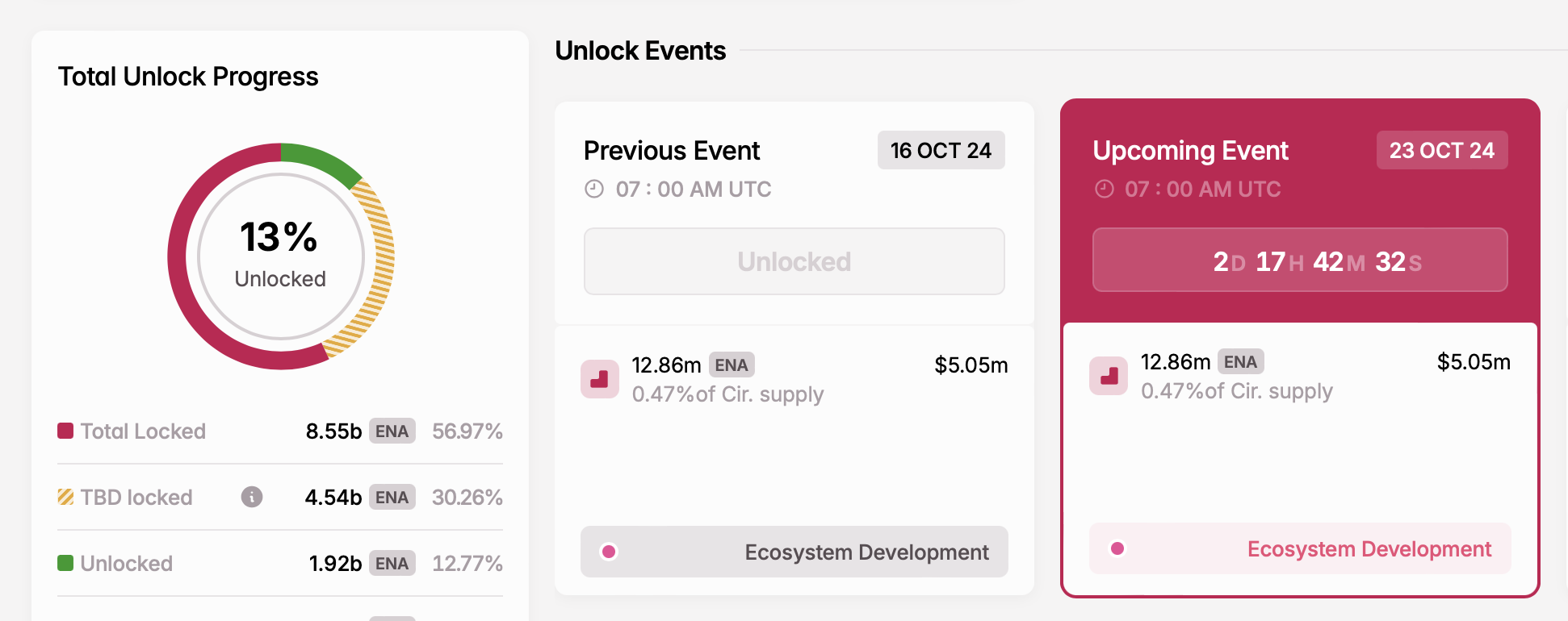 - Número de tokens desbloqueados: 12,86 milhões de ENA