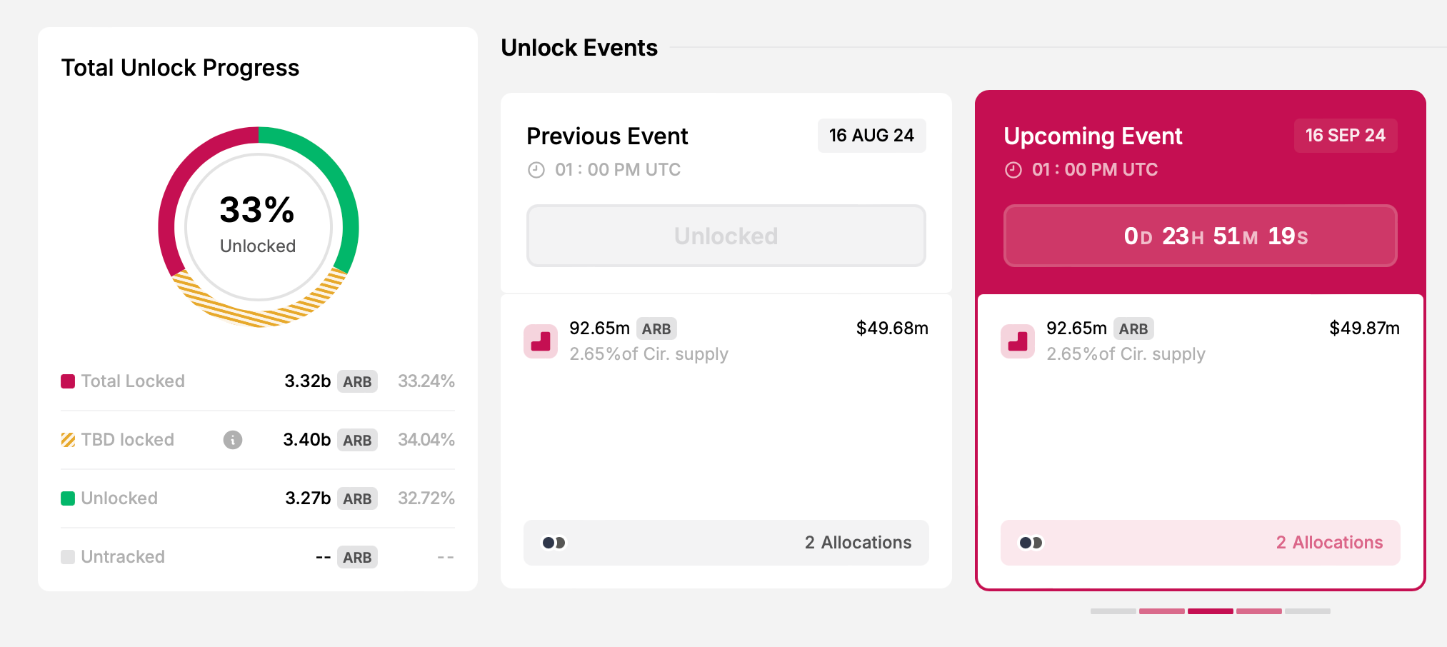 - Número de tokens desbloqueados: 92,65 milhões de ARB