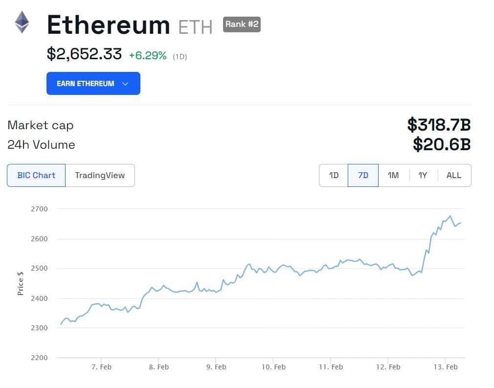 O ETH subiu 6% nas últimas 24 horas para chegar a US$ 2.650, mas o ativo ainda não atingiu uma nova máxima em 2024.