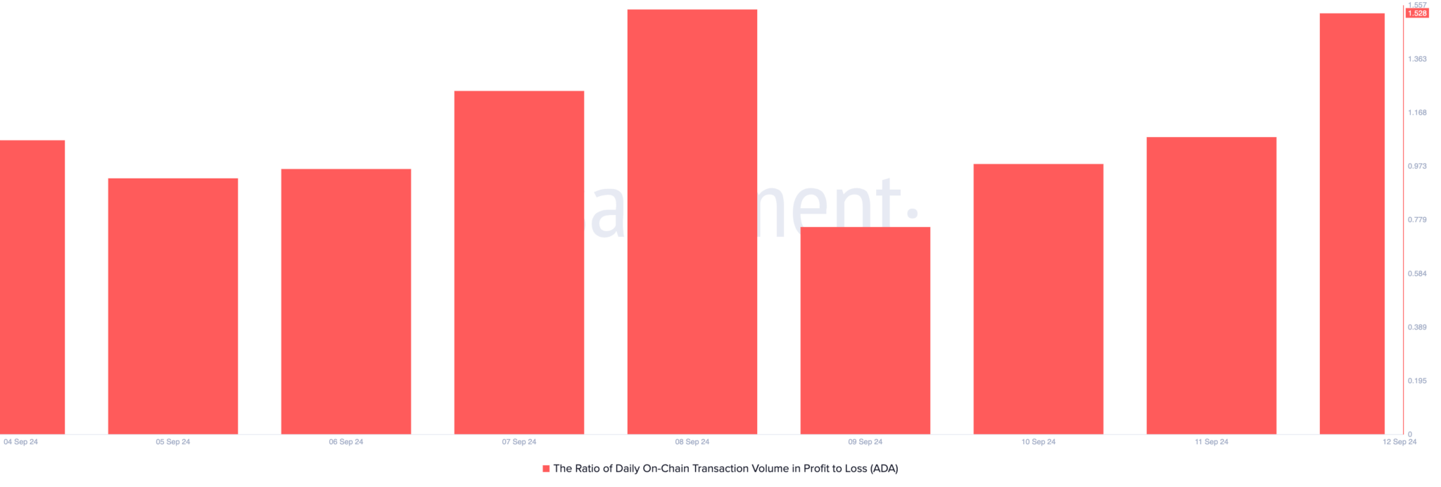 Na quinta-feira, a relação entre transações diárias em lucro e prejuízo atingiu 1,53. Isso indica que para cada transação de ADA que resulta em perda, 1,53 transações geraram lucros.