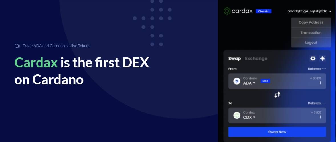 A Cardax é uma exchange descentralizada que almeja ser a DEX nativa para usuários da rede da Cardano. Ela vai permitir a troca de várias criptomoedas baseadas na blockchain da ADA.