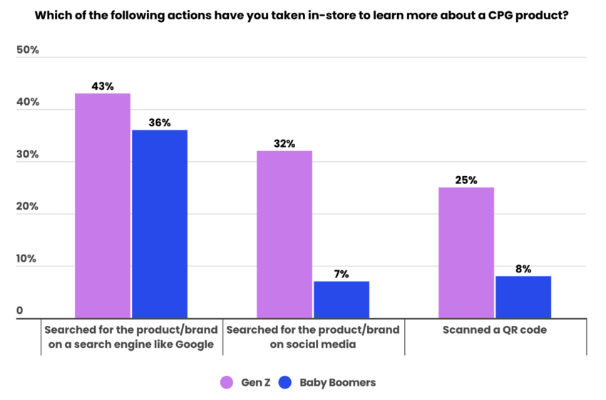 Por exemplo, vale a pena observar os comportamentos na loja. Os consumidores da Geração Z tendem a pesquisar marcas ou produtos específicos nas redes sociais e são mais propensos a utilizar QR coes para obter informações detalhadas sobre o produto.