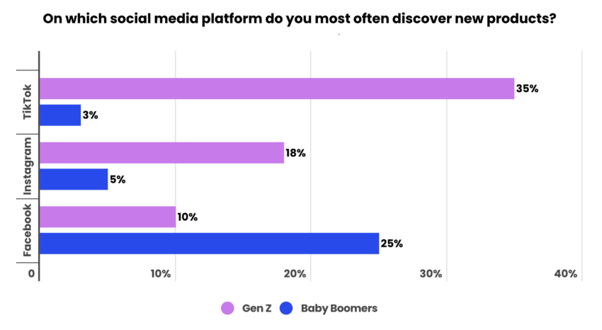 Especificamente, o TikTok emergiu como a meca para a descoberta de produtos da Geração Z, abrangendo categorias que vão desde oportunidades de investimento até tokens não fungíveis (NFTs). Os dados ilustram que a Geração Z frequentemente atribui suas descobertas a esta plataforma ao identificar novos produtos.