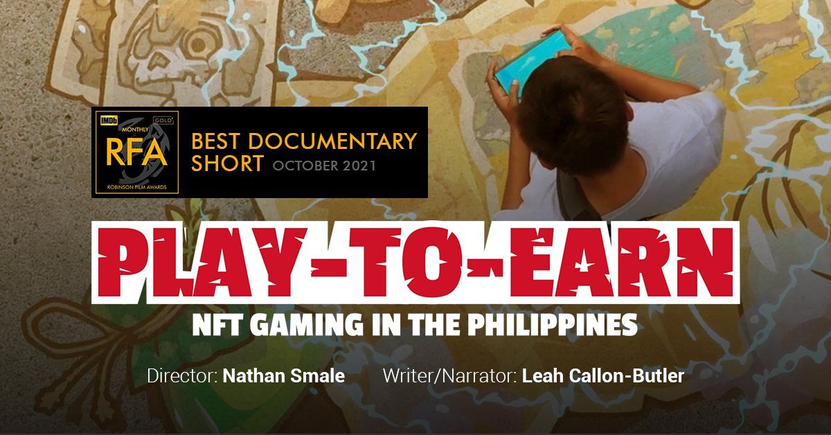 “Estamos orgulhosos em anunciar que nosso documentário #playtoearn“ PLAY-TO-EARN: NFT Gaming nas Filipinas ”ganhou o @RobinsonAwards em outubro de 2021 [na] categoria de curta documentário. Esperamos continuar compartilhando histórias tão inspiradoras com o mundo. ”