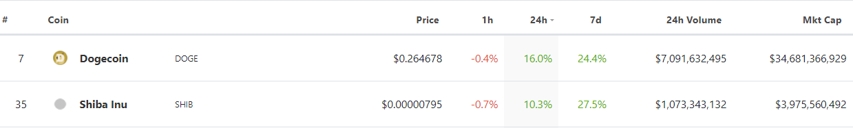 SponsoredNo entanto, os principais ganhadores no fim de semana foram DOGE e SHIB, que subiram dois dígitos. No fechamento da matéria, o DOGE saltava 16% e a SHIB também avançava dois dígitos, com ganhos 10,3% no preço.