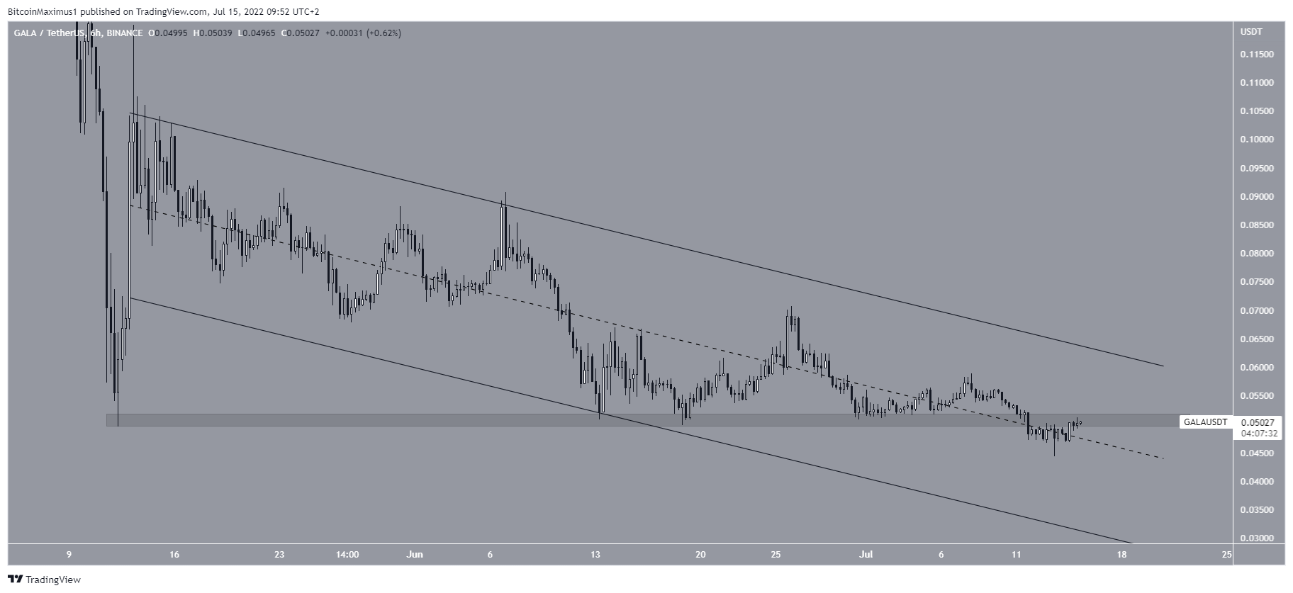 No entanto, seu preço tem subido desde então e está tentando romper acima dessa área. Se o GALA conseguir recuperar o nível horizontal de US$ 0,05, espera-se que rompa a resistência do canal. Por outro lado, não conseguir fazer isso provavelmente levaria a seu preço a atingir novas mínimas anuais.