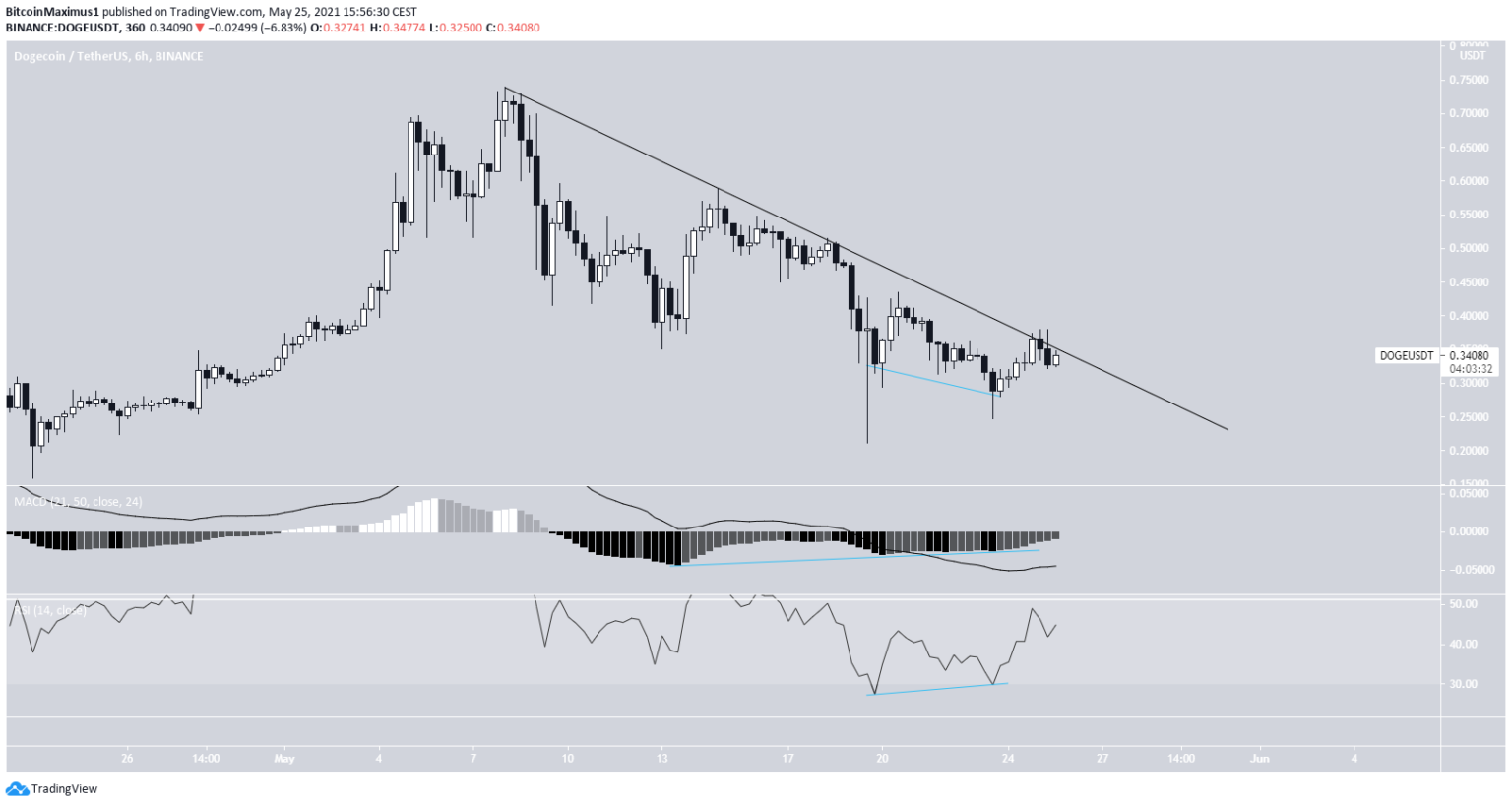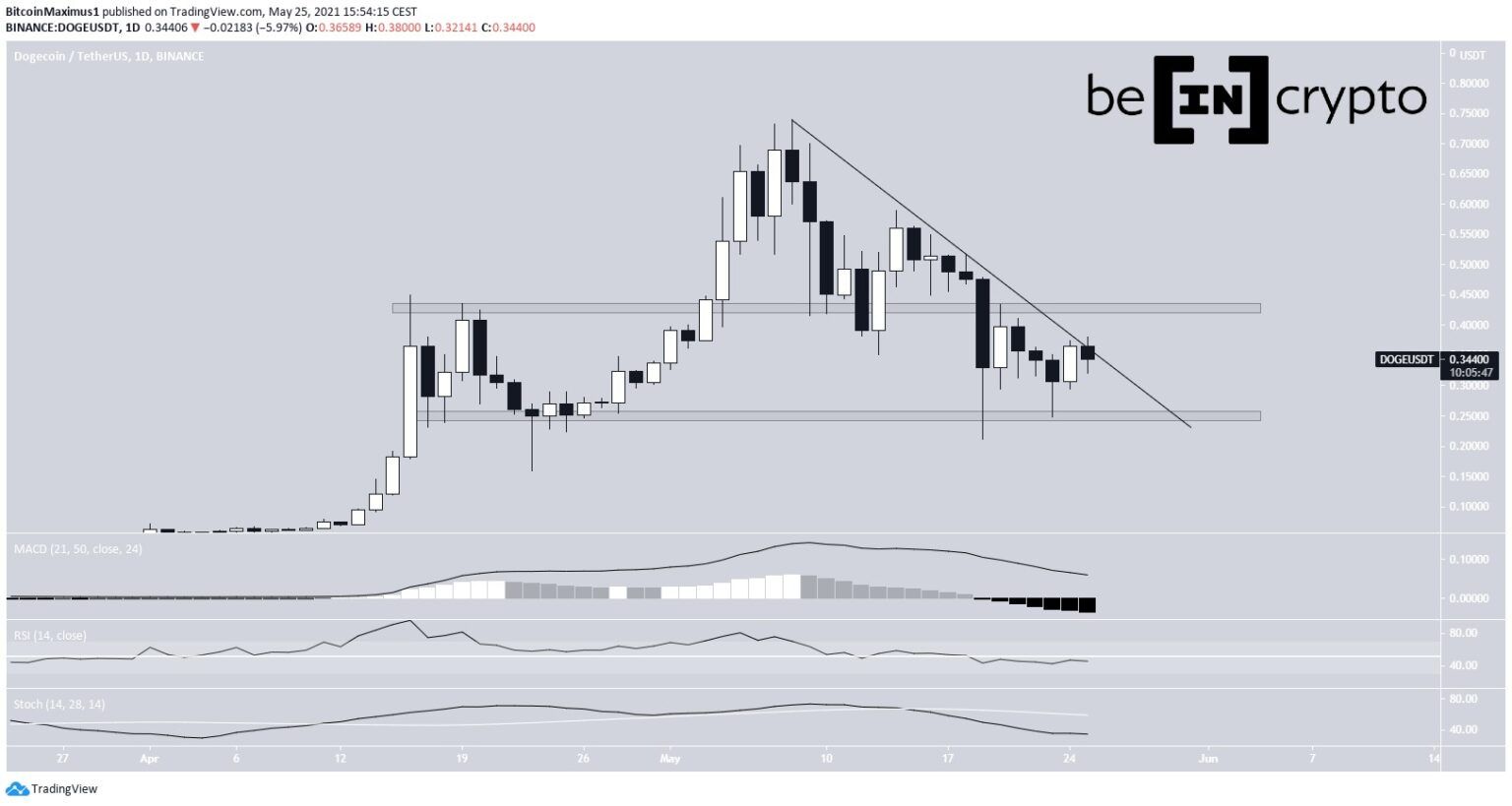 A Dogecoin (DOGE) tem seguido uma linha de tendência de baixa desde o dia 8 de maio.