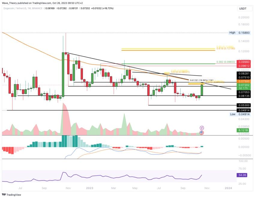 O salto recente de 19% da Dogecoin (DOGE) é o início de uma nova tendência de alta de longo prazo ou apenas uma correção da queda anterior?