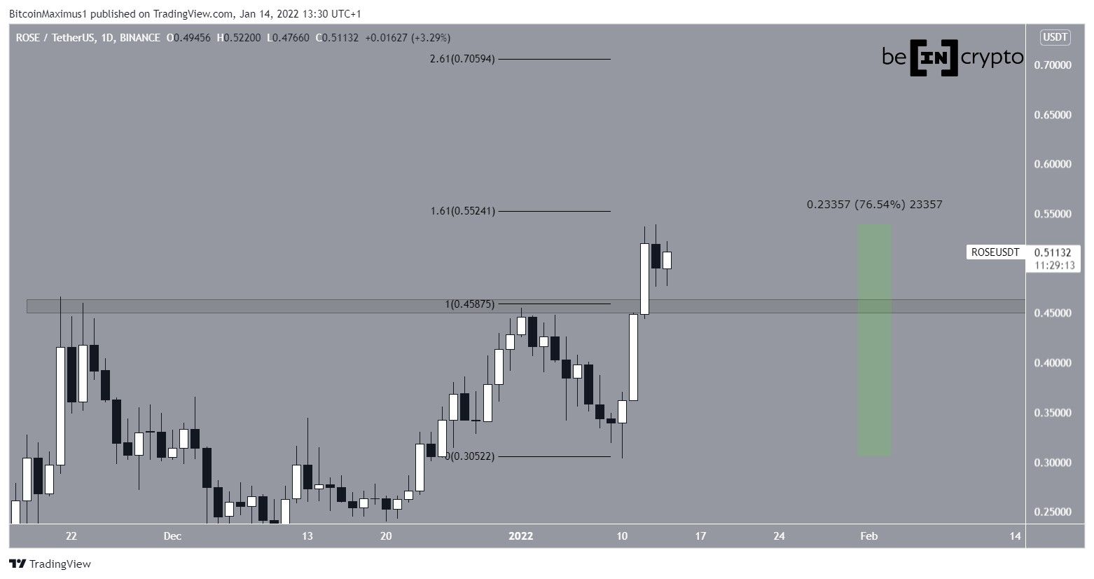 A ROSE está em tendência de alta desde 10 de janeiro, quando atingiu a mínima de US$ 0,30. Quatro dias depois, o token atingiu um novo preço recorde de US$ 0,538. Isso representou uma valorização de 77%.
