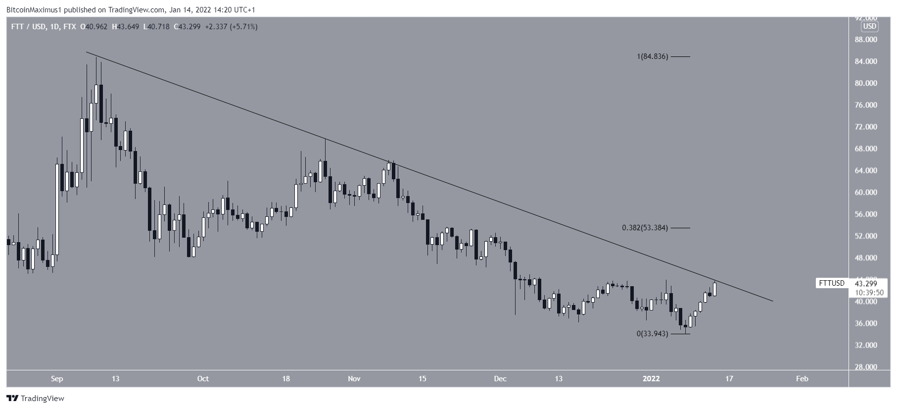 A FTT estava seguindo uma linha de tendência de baixa desde que atingiu um novo preço recorde em US$ 84,7 no dia 9 de setembro. O movimento levou a uma mínima de US$ 33,8 em 8 de janeiro.