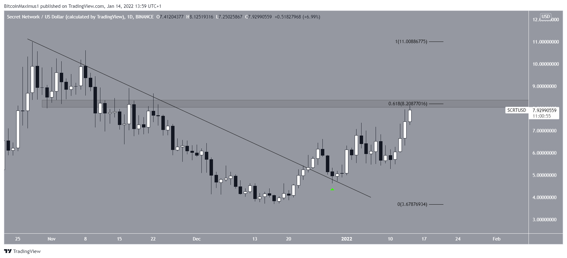 O SCRT estava seguindo uma linha de tendência de baixa desde 28 de outubro. Em 24 de dezembro, ele rompeu essa linha e voltou para validá-la como suporte (ícone verde) cinco dias depois. Desde então, seu preço está subindo.