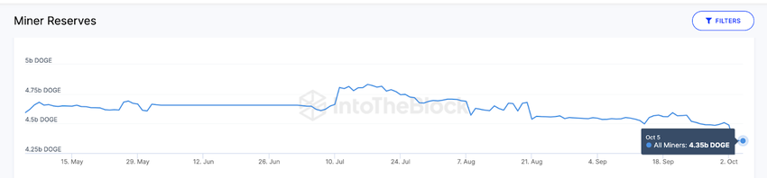 Os mineradores tinham um total de 4,67 milhões de DOGE no dia 17 de agosto. Mas esse número diminuiu gradualmente desde então, atingindo 4,35 milhões de DOGE no dia 5 de outubro.