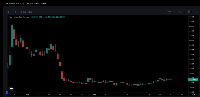 A título indicativo, o interesse em aberto do Dogecoin era de um total de US$ 205 milhões no dia 21 de setembro. Mas, desde então, ele cresceu para US$ 234 milhões até o momento desta publicação.
