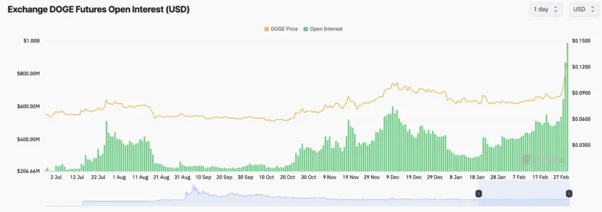 SponsoredDados da Coinglass mostram um salto de 51% nas posições em aberto para negociações do mercado futuro nas últimas 24 horas. Esse salto estabeleceu um recorde com uma aposta de US$ 1,09 bilhão no ativo.