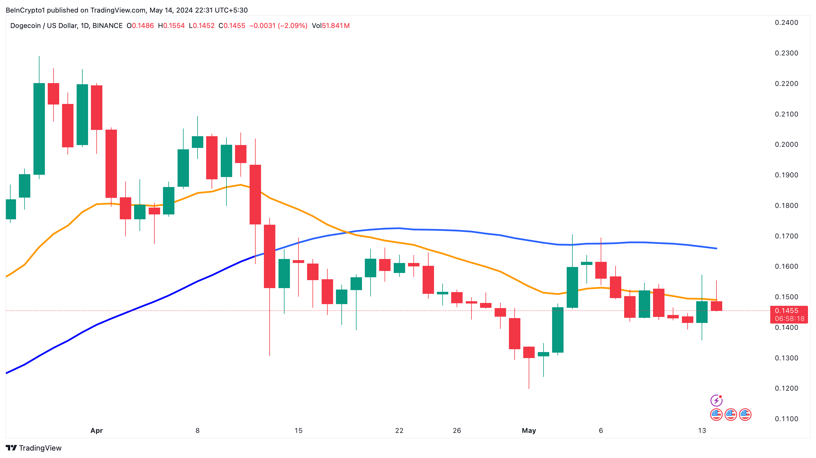 Por exemplo, a Média Móvel Exponencial (EMA) de 20 dias em US$ 0,149 é um nível importante a ser observado pelos investidores. A ancoragem acima dessa barreira pode preparar o terreno para uma alta em direção à Média Móvel Simples (SMA) de 50 dias, em US$ 0,166. Se a tendência se mantiver, o preço do DOGE poderá se aproximar de US$ 0,210.