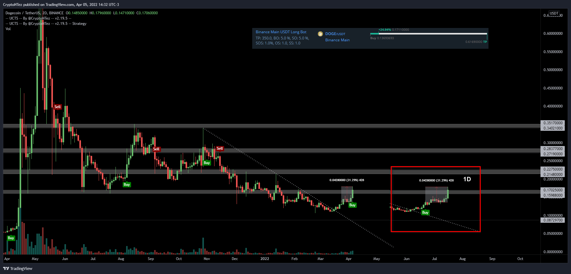 Se estiver correto, isso significaria que a correção de longo prazo para o DOGE está completa e o preço iniciou um movimento de alta substancial.