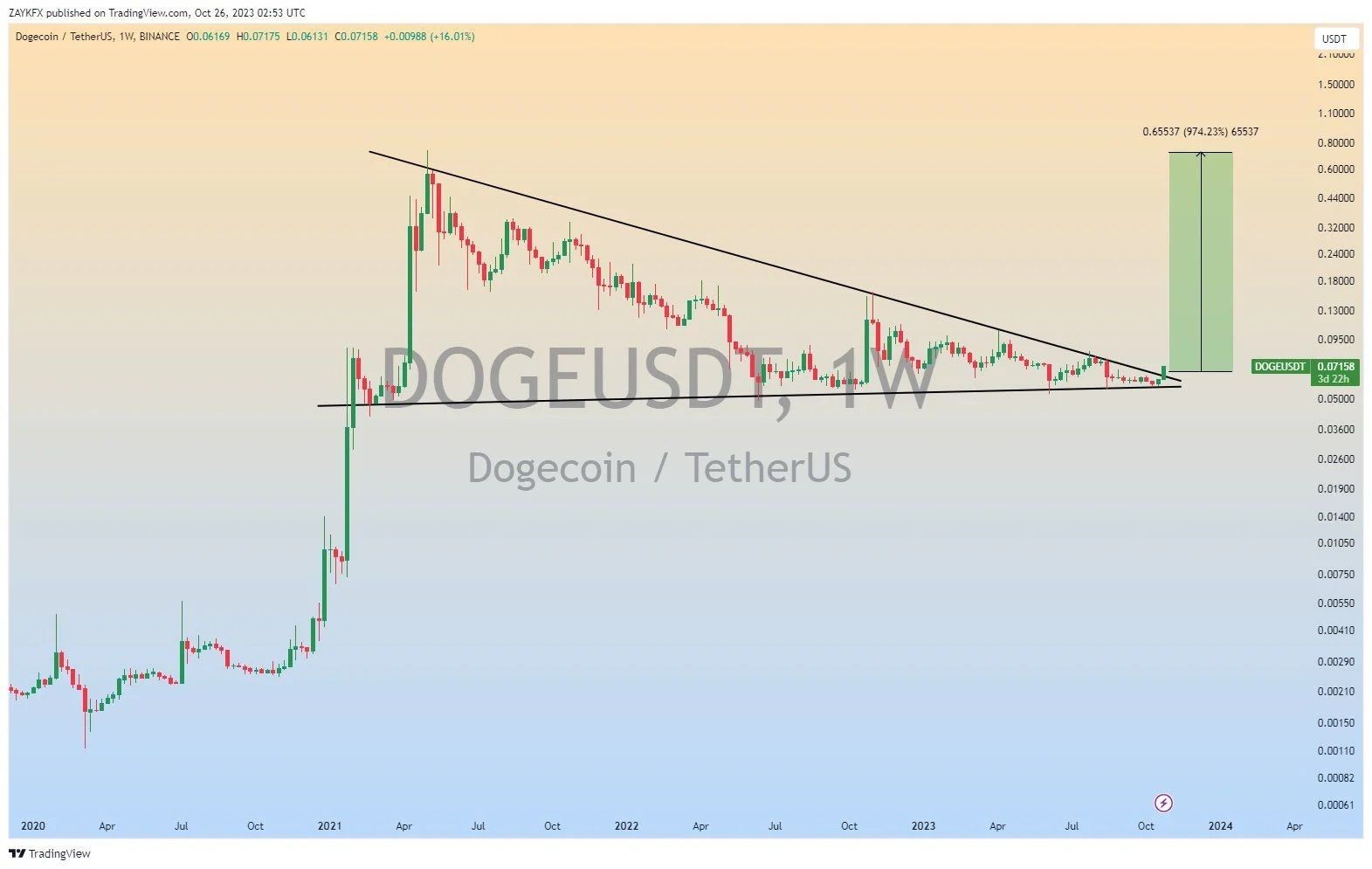 ZAYKChart postou a mesma linha de tendência de baixa de longo prazo. Ele acredita que o preço está pronto para uma enorme onda de alta.